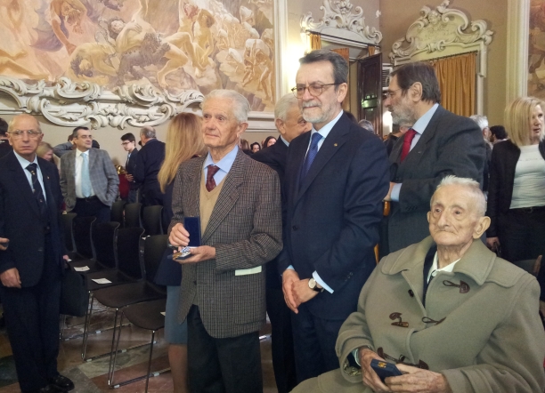 Bologna, 27 nov. – In occasione della Giornata della Memoria, 19 cittadini “internati nei lager nazisti o deportati in Germania” e lì obbligati a lavorare oggi sono stati insigniti dal prefetto di Bologna Ennio Mario Sodano della medeglia d’onore, conferita dal presidente della Repubblica, in base a una legge del 2006. Solo due di loro sono in vita, Luciano Gnudi (nel video) e Nino Pazzaglia.