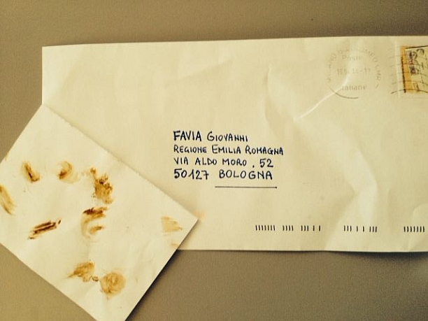 Bologna, 17 apr. – Una lettera sporcata di feci spedita nel suo ufficio di viale Aldo Moro, sede della Regione Emilia-Romagna. Giovanni Favia, il destinatario, l’ha fotografata e ha denunciato il fatto via Facebook, prima di rivolgersi alle forze dell’ordine. La colpa, a suo avviso, sono le “campagna d’odio” contro gli espulsi dal Movimento 5 stelle. “Stamattina è arrivata in ufficio una lettera anonima con all’interno un foglio sporcato di feci, vere”, scrive Favia.