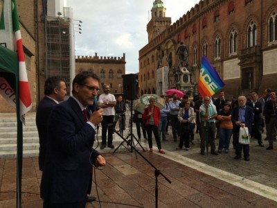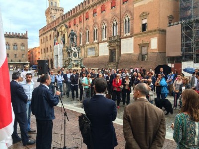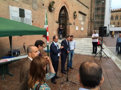 E’ Marco Lombardo, responsabile esteri della federazione bolognese dei democratici, a prendere la parola poco dopo le 19. Al suo fianco il segretario Raffaele Donini, il sindaco Virginio Merola, la presidente del consiglio comunale Simona Lembi. “Davanti a questi morti – dice Merola pensando alle vittime dei bombardamenti israeliani nella striscia di Gaza – provo l’imbarazzo per la latitanza dell’Europa e del governo italiano”.