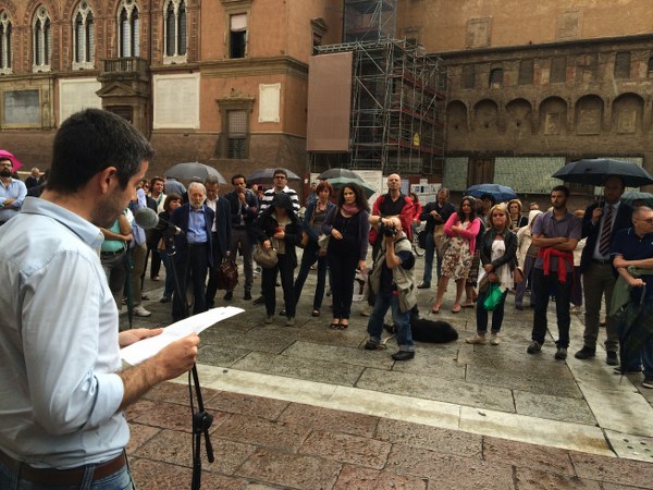Ad ascoltare ci sono pezzi della giunta di palazzo d’Accursio e del consiglio comunale, la presidente della Provincia Beatrice Draghetti e il presidente del consiglio provinciale Stefano Caliandro oltre a dirigenti locali. I militanti di base sono pochi. Ai margini rimane anche l’ex segretario della Camera del Lavoro, Danilo Gruppi, che più tardi affida a Facebook un pensiero molto critico. Gruppi parla di “un campanello d’allarme“: “Ma è mai possibile che a Bologna (a Bologna, non altrove!), di fronte ad una tragedia come quella che sta per l’ennesima volta andando in scena in quella terra martoriata, non si riesca a produrre una mobilitazione delle coscienze in grado di coinvolgere tutta la città, non si riesca a costruire un fronte ampio e trasversale di forze (politiche, sociali, culturali, del’ associazionismo) capace di proporre quella mobilitazione come si è sempre riusciti a fare? Qui- prosegue l’ex numero uno della Cgil bolognese- non c’entra l’inclemenza del tempo, l’orario poco accomodante, il poco tempo a disposizione per organizzare l’ iniziativa (tutte scusette auto consolatorie che rischiano di banalizzare un problema ben più serio)”.