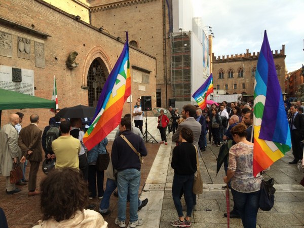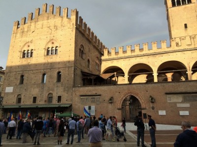 “Non ci può essere equidistanza– dice un dirigente della federazione democratica- io sto con i palestinesi” mentre è intento a smontare il gazebo e a raccogliere le bandiere. Intanto la pioggia ha smesso di cadere, il cielo si è fatto azzurro e dietro palazzo Re Enzo è spuntato l’arcobaleno. “E’ un segno” scherza qualcuno. “E’ solo un arcobaleno” replica un altro.