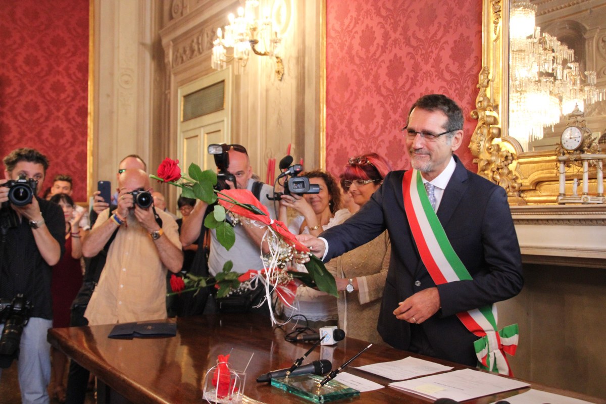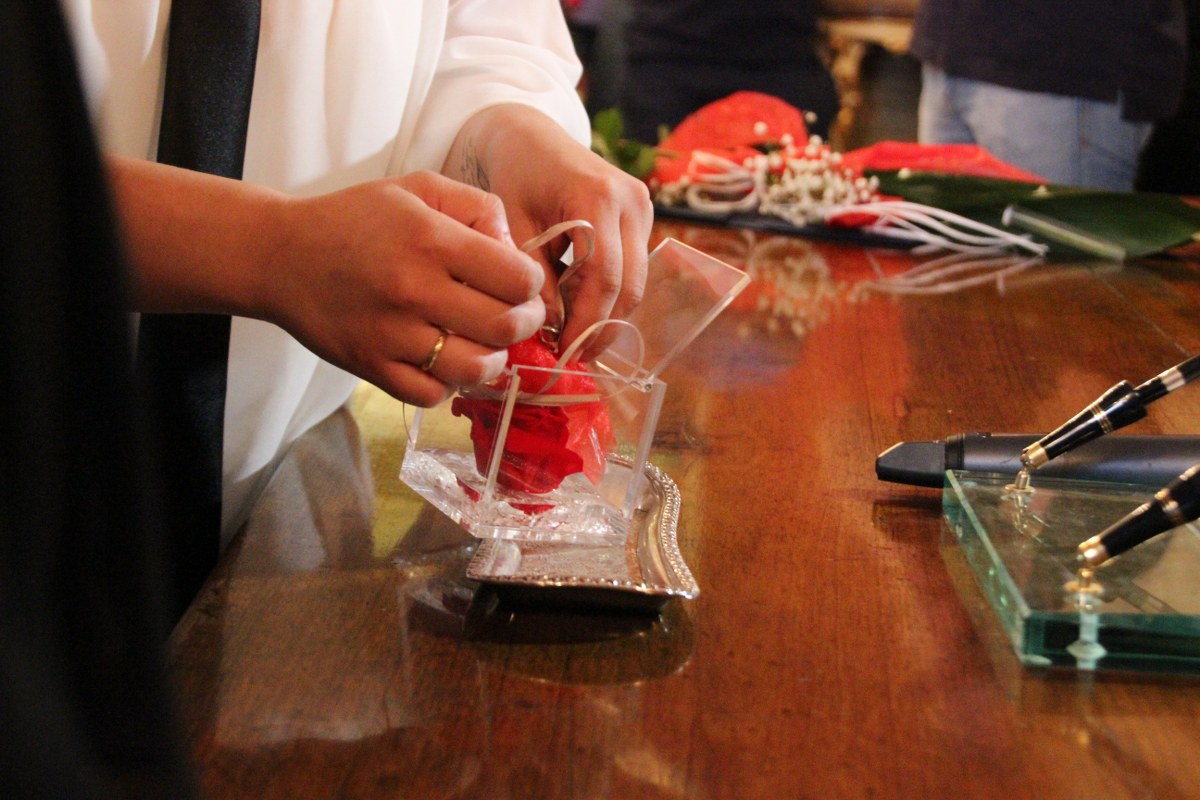 Poi il sindaco legge gli articoli di legge, procede allo scambio degli anelli e dichiara, non senza che la voce si incrini per l’emozione, Anna ed Eleonora “unite civilmente”. Subito scatta l’applauso dei presenti e il bacio delle due spose, visibilmente emozionate e con gli occhi lucidi. Infine, Merola ringrazia gli uffici comunali per il lavoro svolto, regala a entrambe le spose una rosa rossa e si mette in posa per le foto di rito.