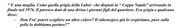 “Storie non sempre con il lieto fine, ma fondamentali che attraverso il gioco del calcio ci permettono di capire la dura realtà e vita quotidiana in un quartiere e una città in perenne lotta contro un mostro, finto simbolo di benessere, ma reale strumento di morte”.