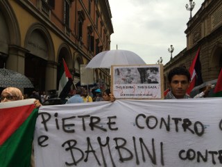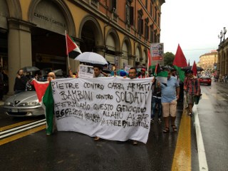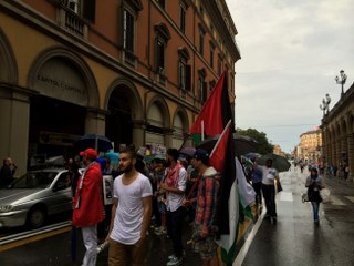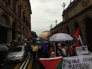 Bologna, 26 lug. – Un centinaio di persone ha sfilato in corteo questo pomeriggio per il centro di Bologna per chiedere la fine del “massacro di Gaza”. Ad organizzare il corteo è stata l’associazione La Comune con la partecipazione di Assopace Palestina. In piazza molti i cittadini di origine araba, tanti i giovani, tra gli ombrelli e le bandiere palestinesi.
