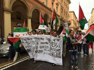 Ad aprire il corteo, partito intorno alle 16 da piazza XX settembre, uno striscione bianco: “Pietre contro carrarmati e bambini contro soldati. Fermiamo questo genocidio”. Dagli altoparlanti montati su di un’auto grigia venivano gridati gli slogan. “Vita terra Libertà, con la Palestina solidarietà” urlavano in coro i manifestanti: molti i giovani di origine araba, alcuni con bandiere palestinesi, altri con bandiere dell’opposizione siriana. Con loro i militanti e le militanti dell’associazione La Comune, che edita l’omonimo giornale, ex Socialismo rivoluzionario.