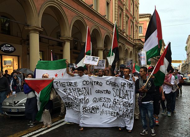 “L’umanità non ha confini, con la Palestina sempre più vicini” gridavano in coro, alternato a slogan di condanna di Israele: “Il sionismo è terrorismo” e “Boycott Israel”.