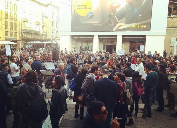Con una semplice frase e un gioco di parole riassume la questione Alessandro Bergonzoni: “Il tema è essere appesi a un figlio”. Infine, il presidio iniziato sulle note di Bella ciao è terminato intorno alle 18.15 con l’Inno di Mameli.