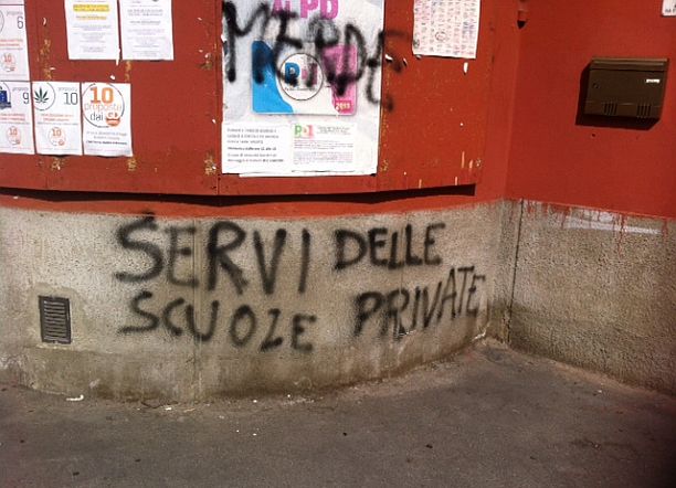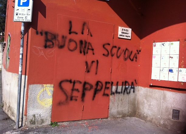 Bologna, 3 lug. – Il circolo del Pd “Andrea Costa” di via Martini, a Bologna, è stato imbrattato nella notte con scritte che fanno riferimento alla riforma della “Buona scuola“, riforma che da tempo sta opponendo il mondo della scuola al governo di Matteo Renzi.