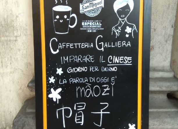 Bologna, 24 mag. – Lezioni di lingua e una tazzina di caffè. Un bar all’angolo tra via Galliera e via dei Mille da mesi espone all’ingresso una lavagnetta che potrebbe fare scuola: se ci si avvicina, vi si trovano scritti alcuni ideogrammi in gesso bianco accompagnati da una traslitterazione in italiano. Non si tratta del menù ma di una “rubrica” pensata dai gestori della ‘Caffetteria Galliera’ per far imparare il cinese ai propri clienti, selezionando giorno per giorno parole nuove. E sembra che stia funzionando bene; c’è chi entra, incuriosito, e chiede quale sia la pronuncia esatta, addirittura c’è chi si annota gli ideogrammi su un taccuino. Dalle conversazioni scambiate al bancone, ricorda Enza, figlia dei gestori, nelle quali alcuni clienti affezionati chiedevano come si traducessero certe parole da una lingua all’altra, è nata poi l’idea di “estendere la lezione anche ai passanti”.