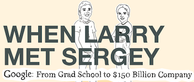 Si intitola When Larry Met Sergey la splendida infografica ospitata sul sito OnLine PhD che narra, come si capisce, la storia dell’azienda costruita intorno al più popolare e usato motore di ricerca del web. Scorrendo il rullo che potete trovare qua, però, non ripercorrerete solo le vicende dei due fondatori di Google: parallelamente si può andare alla scoperta di altri dati, quali i “tormentoni” del web, il numero di utenti connessi, le specifiche tecniche dei server usati dall’azienda e molto altro.
