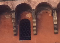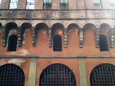 Il blocco proviene da una delle mensole che reggono gli archetti pensili di appoggio della merlatura. La Rocchetta dell’Asinelli è stata restaurata nel 1998.