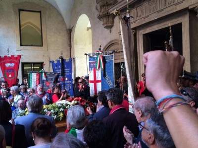 “Per essere uomini ci vuole coraggio e responsabilità” ha detto Carlo Smuraglia, presidente nazionale Anpi, salito da Roma per il saluto a Michelini. “William, Lino – ha proseguito Smuraglia – aveva anche una grande umanità. Non posso partecipare a tutti i funerali di membri dell’Anpi, sarebbero troppi, ma a quello di Lino non potevo mancare”.