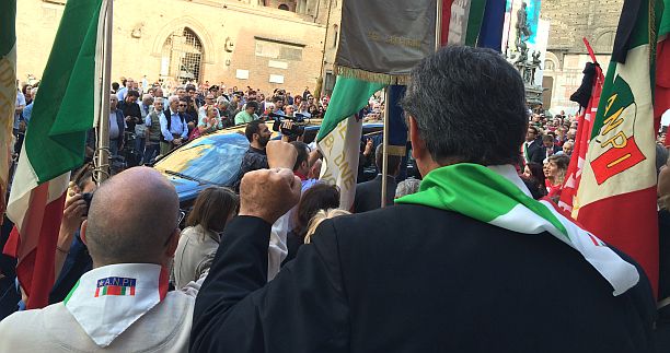 Dopo un piccolo corteo fino al sacrario dei caduti partigiani, in piazza del Nettuno, la bara di Michelini è stata portata al cimitero di Borgo Panigale per la cerimonia privata.