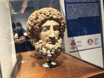 Accanto all’Amorino dormiente di Caravaggio prestato dagli Uffizi, alla Testa di Ade, la scultura sottratta ad un’area archeologica siciliana e recuperata dai Carabinieri negli Stati Uniti, trovano posto i disegni di Shahrazade, una piccola profuga siriana del campo greco di Idomeni, il Siddharta di Herman Hesse che fu di Giulio Regeni e la testa di Donna sorridente di età punica prestata dal Museo del Bardo di Tunisi.