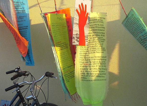 Prima ricognizione. Incontriamo tanta voglia di normalità e di turismo, che è lavoro e incontro. “Ma dicono che ci sono i clandestini, poi l’ebola, perfino la sirena..” per questo forse quest’anno la stagione estiva è andata meno bene. Ma ora Lampedusa è piena di gente, viaggiatori che per ragioni varie hanno scelto di venire in settembre, e per il 3 Ottobre, sull’Isola bella. Africani, per ora, oltre a noi c’è qualche lavoratore, residente o stagionale, e gli artisti invitati al Lampedusainfestival. Tra questi, Dagmawi Yimer, regista, che è tornato a Lampedusa per presentare il suo film “Va’ pensiero – storie migranti” e che curerà la regia di una azione collettiva il 3 ottobre, in acqua, con dei drappi bianchi, per dare un corpo e restituire un nome ad ognuno dei morti del naufragio.