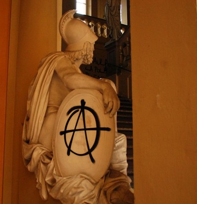 Bologna, 20 mag. – “L’aula odia, la Polizia non può sequestrare“. E ancora: “Meglio teppisti che infami”. Sono due delle tante scritte apparse sui muri della Facoltà di Scienze politiche dell’Università di Bologna, probabilmente tra venerdì e sabato notte quando nel cortile di Palazzo Hercolani è stata organizzata una festa non autorizzata. Imbrattata con vernice nera anche una delle statue del piano terra. Le scritte, che hanno avuto vita breve visto che già questa mattina degli operai hanno ripulito i muri, fanno riferimento al sequestro dell’aula C, storica auletta autogestita sigillata dallo scorso 11 maggio su disposizione del Tribunale del Riesame.