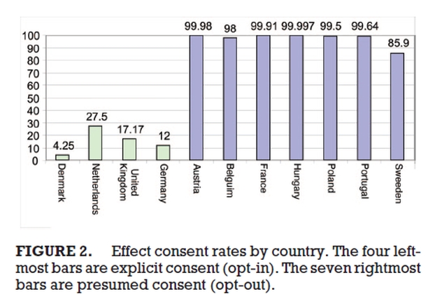 “Gli esperimenti in laboratorio dell’economia sperimentale – spiega Orsini – si occupano di capire come si comportano le persone incentivandole con premi in denaro. E hanno dimostrato come la teoria economia classica sia fallace in alcune sua previsioni che presuppongono scelte assolutamente razionali e assolutamente egoistiche”. Insomma l’economia sperimentale inserisce complessità nelle teorie economiche classiche e prende in considerazione ad esempio l’influenza delle norme sociali (ma non solo) nella scelta degli individui. Tutto scontato allora? Dopo tutto, verrebbe da dire, sociologia e antropologia seguono la pista già dal 1800. Ricerche come quella di Eric J. Johnson e Daniel G. Goldstein dell’Università della Columbia dimostrano che la questione non è così semplice, e aiutano a comprendere l’utilità dell’economia sperimentale. I due ricercatori hanno mostrato come lasciare la scelta alle persone su alcune questioni (ad esempio se donare o meno gli organi in caso di morte) comporta un “costo cognitivo” e una difficoltà decisionale così forte da spingere molti a non scegliere per nulla, e ad abbassare così drasticamente il numero di potenziali donatori. Lasciando invece come scelta di default il ‘sì’ alla donazione e concedendo solo la possibilità di uscire dalla comunità di donatori (opt-out) la percentuale di donatori di organi invece rimane altissima. La prova arriva dai test sperimentali, ma la teoria di Johnson e Goldstein è sostenuta anche dai dati relativi ai vari paesi europei.