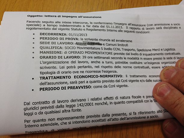 Un’altra delle contestazioni mosse dal Si Cobas riguarda il fatto che ad alcuni lavoratori sarebbe stato proposto un contratto con tre mesi di periodo di prova. “Falso” dice ancora Tassoni che mostra la lettera di assunzione di un facchino in cui la cooperativa annuncia di rinunciare al tempo di prova previsto.