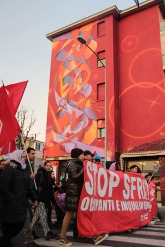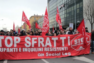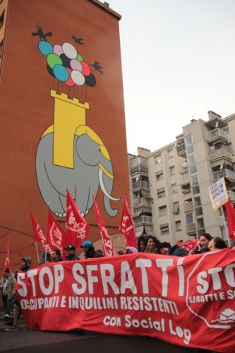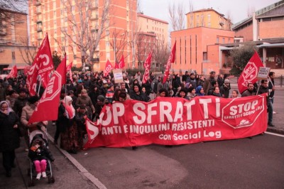 Bologna, 31 gen. – L’avevano annunciata come “la marcia delle periferie” e così è stato: il corteo contro gli sfratti del collettivo Social Log è partito dalla Bolognina per arrivare a San Donato. In 500 sono partiti dall’occupazione dell’ex Telecom di via Fioravanti dietro allo striscione “Stop Sfratti” firmato “occupanti e inquilini resistenti con Social Log”. Un’iniziativa simile a quella che oggi si è svolta anche a Milano, Roma, Firenze, Palermo ed altre città in Italia. Lo sportello di Social Log su viale Masini continua a ricevere decine di persone in cerca di aiuto a settimana, raccontano gli attivisti che, dopo tre occupazioni in città, vogliono cercare di rafforzare la rete di resistenza agli sfratti. Sui volantini distribuiti lungo il tragitto e negli interventi dalle casse del furgone c’era l’invito ad unirsi alla lotta per la casa, rivolto agli abitanti del Navile e di San Donato, due tra i quartieri più colpiti dall’emergenza casa. “In questi mesi grazie ai presidi siamo riusciti a far rimandare venti sfratti esecutivi” spiega Luca Simoni di Social Log che si attende un forte aumento dell’impegno per i prossimi mesi: “Ci hanno già contattato decine di persone che attendono lo sfratto nel mese di febbraio”.