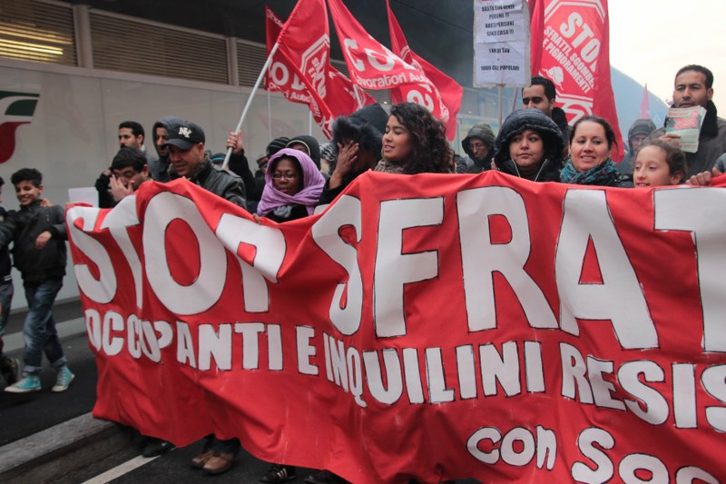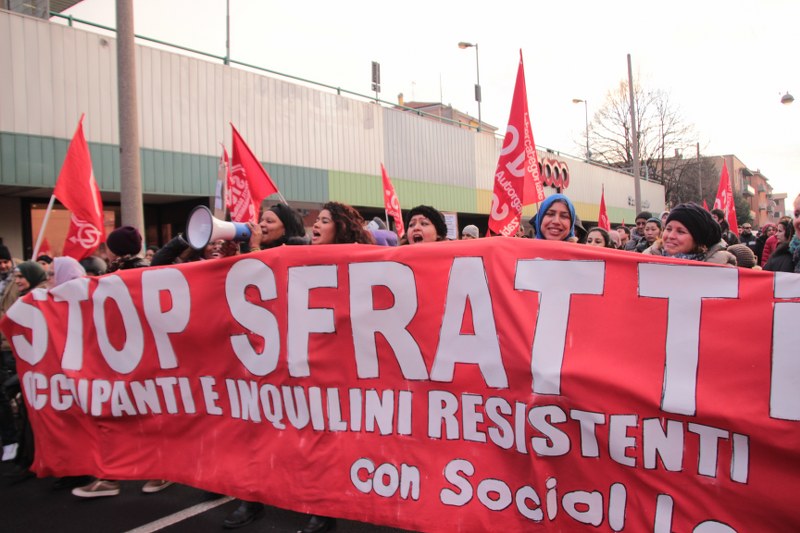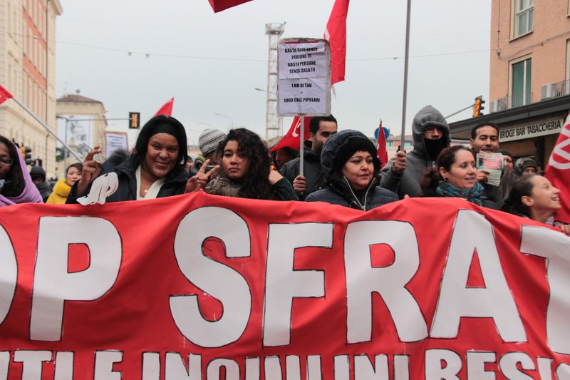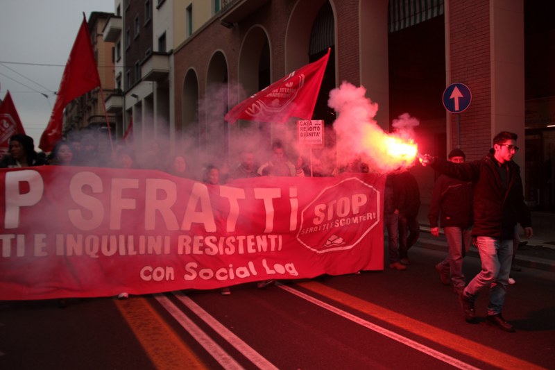 Bologna, 31 gen. – L’avevano annunciata come “la marcia delle periferie” e così è stato: il corteo contro gli sfratti del collettivo Social Log è partito dalla Bolognina per arrivare a San Donato. In 500 sono partiti dall’occupazione dell’ex Telecom di via Fioravanti dietro allo striscione “Stop Sfratti” firmato “occupanti e inquilini resistenti con Social Log”. Un’iniziativa simile a quella che oggi si è svolta anche a Milano, Roma, Firenze, Palermo ed altre città in Italia. Lo sportello di Social Log su viale Masini continua a ricevere decine di persone in cerca di aiuto a settimana, raccontano gli attivisti che, dopo tre occupazioni in città, vogliono cercare di rafforzare la rete di resistenza agli sfratti. Sui volantini distribuiti lungo il tragitto e negli interventi dalle casse del furgone c’era l’invito ad unirsi alla lotta per la casa, rivolto agli abitanti del Navile e di San Donato, due tra i quartieri più colpiti dall’emergenza casa. “In questi mesi grazie ai presidi siamo riusciti a far rimandare venti sfratti esecutivi” spiega Luca Simoni di Social Log che si attende un forte aumento dell’impegno per i prossimi mesi: “Ci hanno già contattato decine di persone che attendono lo sfratto nel mese di febbraio”.
