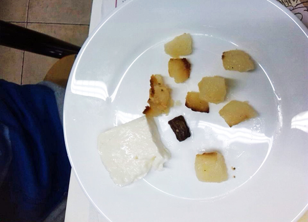 Intanto appare sul web una nuova immagine che ha sollevato critiche sulla qualità e la quantità dei pasti nelle mense: un piatto composto da un pezzo di stracchino accompagnato da 9 piccoli pezzi di patate al forno, di cui uno bruciato.