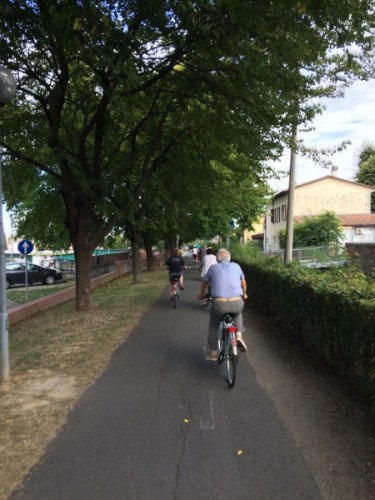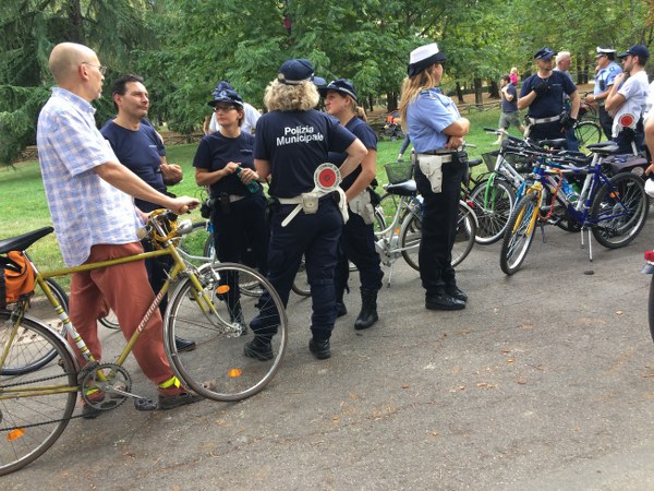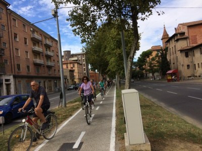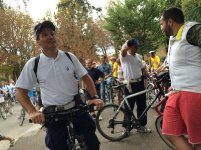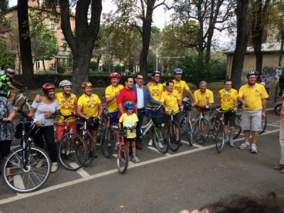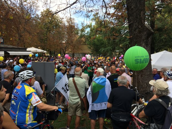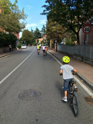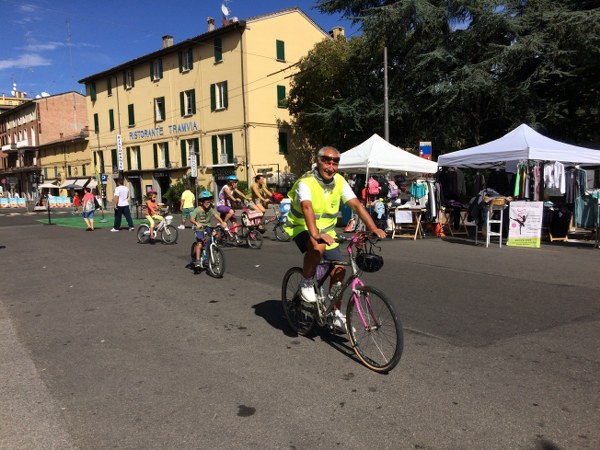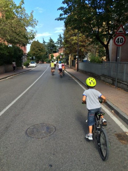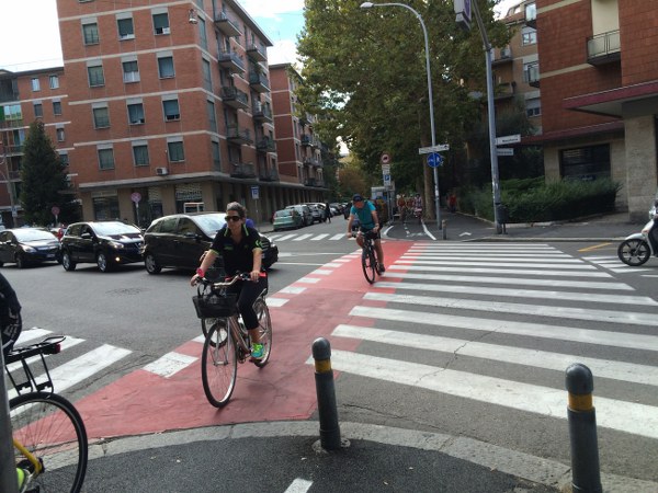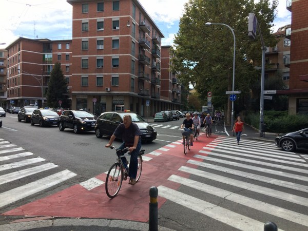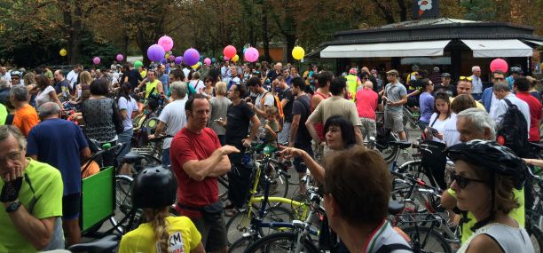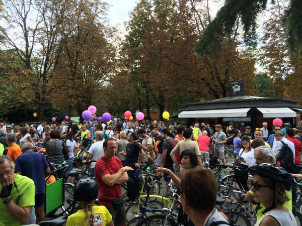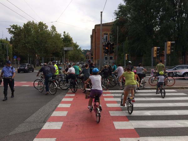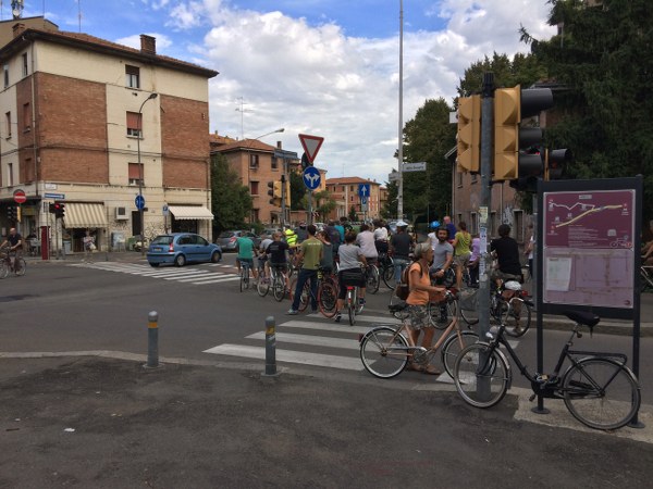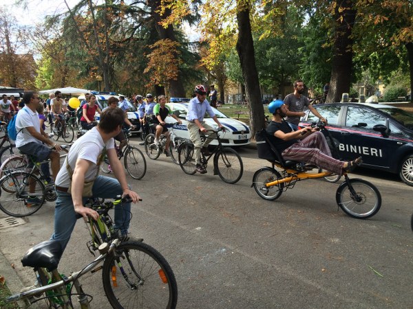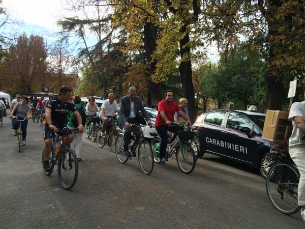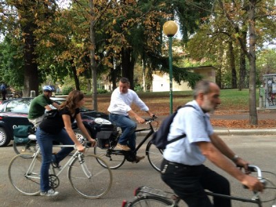 Alcuni ciclisti sono arrivati alla spicciolata, altri, la maggior parte, in gruppi organizzati partiti da un decina di punti in periferia e dai comuni limitrofi. Una marea di ruote, pedali, campanelli e sorrisi a stento contenibile negli spazi angusti delle piste ciclabili, a dimostrazione che se davvero si vorrà far crescere la percentuale di bolognesi che utilizza regolarmente la bicicletta (il sindaco Merola ha detto che l’obiettivo del prossimo mandato sarà di arrivare al 30% degli spostamenti a fronte di un attuale 10%, ndr) bisognerà ripensare seriamente le infrastrutture. “E’ una lotta continua per trovare spazi per le biciclette” dice il sindaco; “in alcuni casi abbiamo anche ridotto lo spazio per le auto” gli fa eco Colombo citando il caso di via Saffi, dove la pista ciclabile è stata realizzata al margine della strada, tra i parcheggi e il portico, riducendo le corsie per le auto.