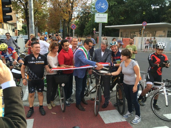 L’inaugurazione della tangenziale è un’occasione importante, tanto da convincere l’assessore regionale ai trasporti Raffaele Donini, a inforcare la bicicletta e a partire da viale Aldo Moro spingendo sui pedali. “Colombo mi aveva offerto una delle sue- spiega Donini-, ma ho preferito prendere la mia che è tarata su di me, per via dei miei problemi di schiena”. Anche Simona Lembi arriva in sella ad una bicicletta, così come l’assessore Luca Rizzo Nervo.