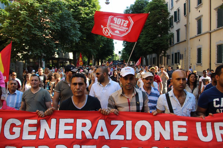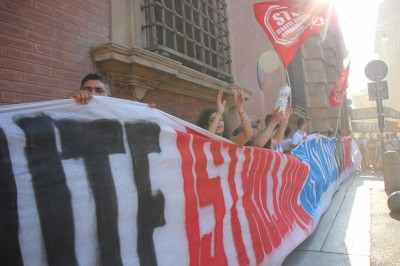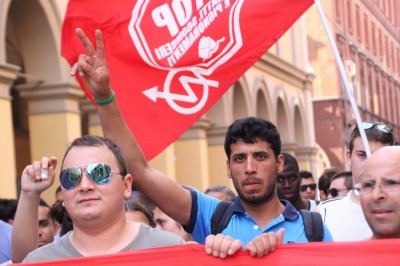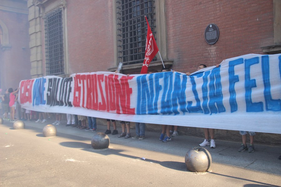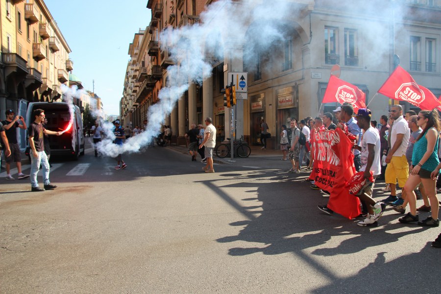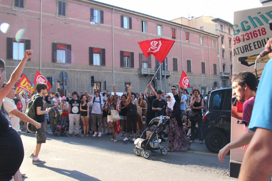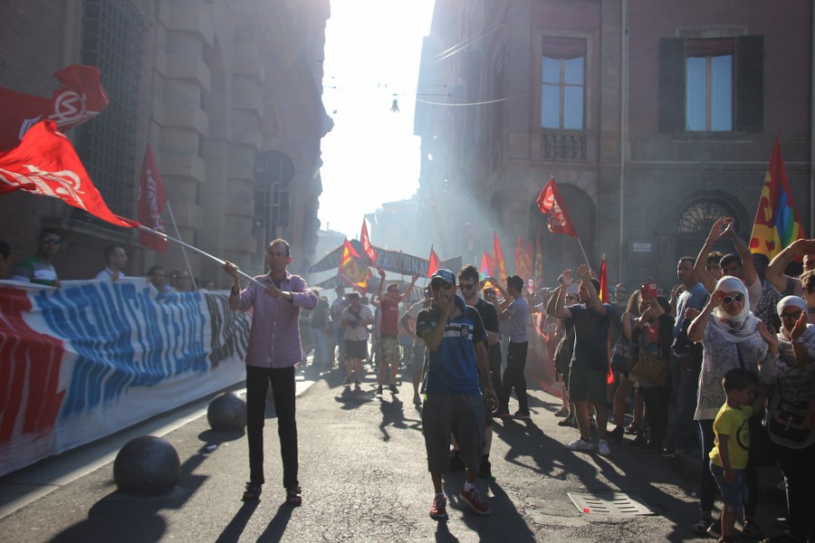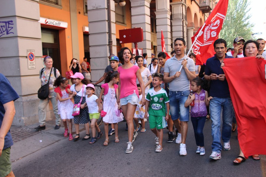 Bologna, 6 giu. – “Con la pensione minima non riesco a pagare l’affitto, il cibo e le bollette”. E’ Costantino, di ottant’anni, a raccontare cosa significa essere sotto sfratto, alla fine della “marcia” organizzata dal collettivo Social Log. E’ nato a Rovigo, abita a Bologna da sessant’anni e si commuove quando si parla di lui, della solidarietà portata sotto casa sua in Bolognina all’arrivo dell’ufficiale giudiziario. Lo abbraccia un giovane occupante di origine marocchina ed è solo una delle tante immagini della “Bologna meticcia”, come la chiamano negli slogan, che si sono viste nel corteo che dall’occupazione dell’ex Telecom è arrivato fino alla Prefettura di Bologna. Se all’inizio erano soprattutto gli stranieri in difficoltà ad accedere agli sportelli del collettivo, ci racconta Luca Simoni, ora sono sempre di più anche gli italiani. Quando abbiamo chiesto a Costantino come ha conosciuto Social Log è stata la moglie a rispondere, semplicemente: “Sono i nostri vicini di casa”.
