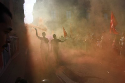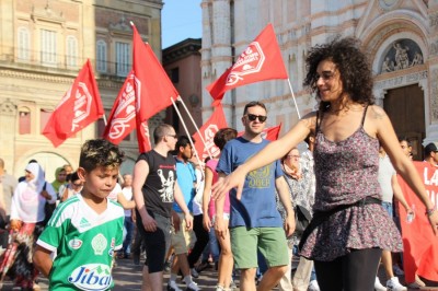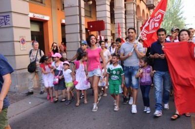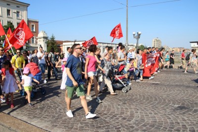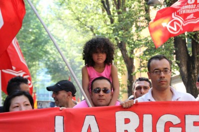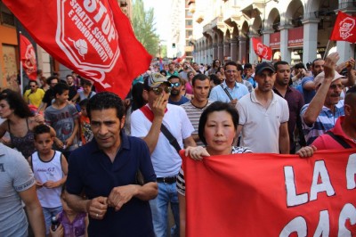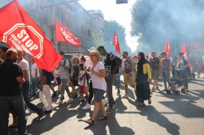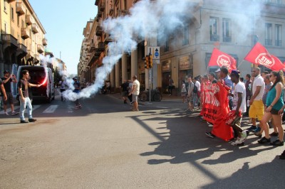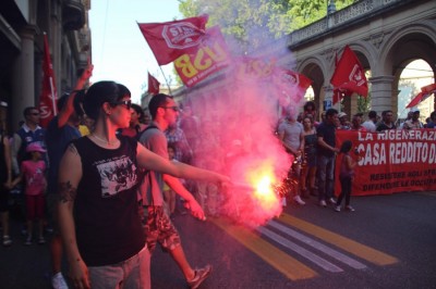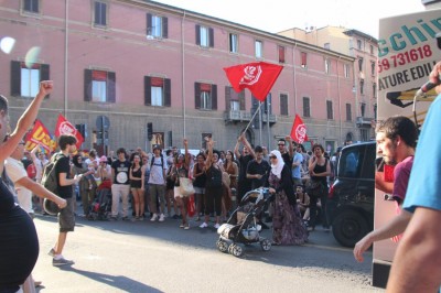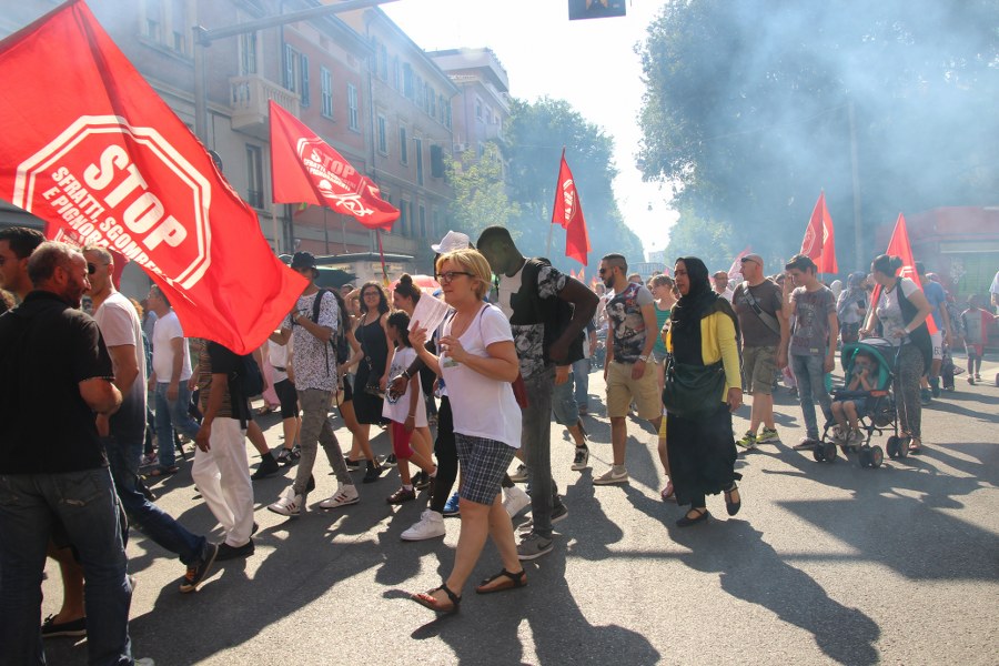Al corteo oltre alle bandiere “Stop sfratti”, c’erano anche quelle del sindacato Si Cobas e di Usb, insieme allo striscione della Coalizione Internazionale Migranti Rifugiati e Sans-papiers, che ha occupato ed è stata sgomberata dall’ex Dima di via Emilia Levante.