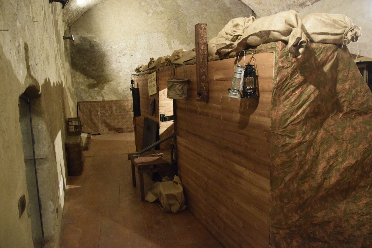 Nel portico esterno, per tutto il week end, sarà possibile entrare all’interno di una trincea italiana appositamente ricostruita dall’associazione nazionale della Sanità Militare Italiana – sezione di Torino e del Gruppo Alpini di Verrua Savoia per sperimentare attraverso luci e suoni la simulazione dell’esperienza di un bombardamento subìto dagli occupanti di una trincea.