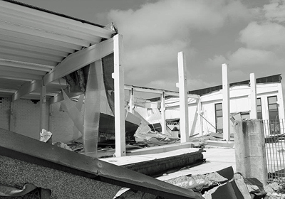23 mag. – Il municipio di Mirandola è a rischio crollo dopo il terremoto di domenica. Gli uffici comunali sono stati trasferiti nella scuola media a pochi metri di distanza dalla tendopoli che ospita gli sfollati del comune. Nel Comune del modenese ci sono ancora 150 aziende chiuse per problemi alle strutture o agli impianti (foto di Linda Pastorelli). Il sisma ha lesionato anche il Duomo, che ha il tetto crollato, il Castello dei Pico e le chiese di San Francesco e del Gesù.