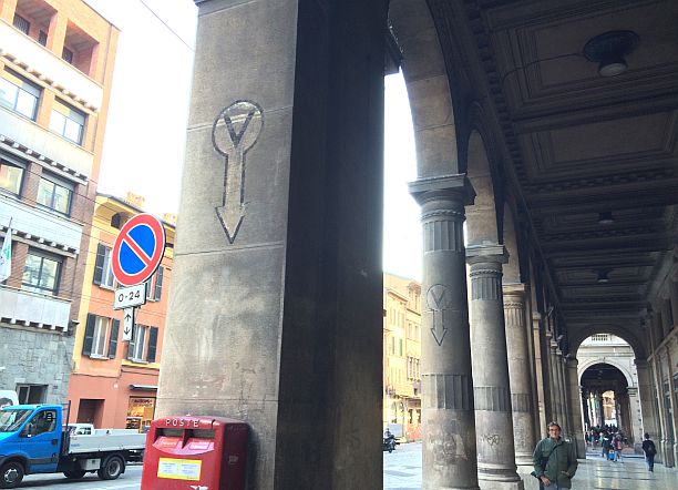 Sui muri della città è ancora presente la segnaletica dei rifugi antiaerei. Alcuni segni indicano i condotti di areazione dei rifugi sottostanti (le V nere cerchiate di bianco corredate di freccia), altri la presenza di idranti per spegner incendi, altri ancora la presenza stessa dei rifugi.