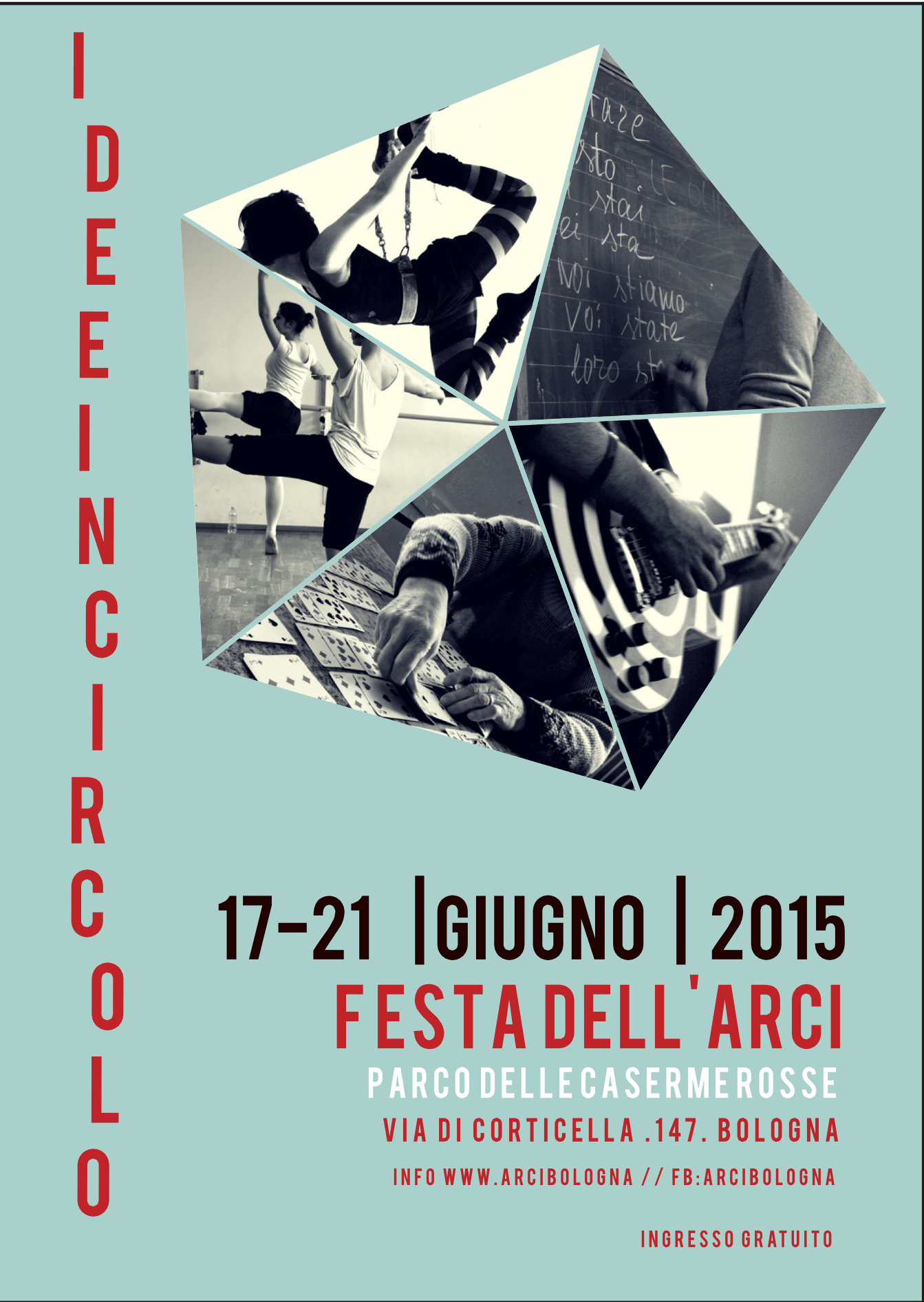 Bologna, 17 giu. – Inizia oggi la prima festa dell’Arci di Bologna. Va sotto il nome “Idee in circolo” e si svolge dal 17 al 21 giugno al Parco delle Caserme Rosse, in via di Corticella 147: cinque giorni di spettacoli, dibattiti, mostre, concerti, laboratori assolutamente gratuiti e aperti a tutta la cittadinanza. L’iniziativa è resa possibile dai volontari provenienti dagli oltre 110 Circoli della città e della provincia.