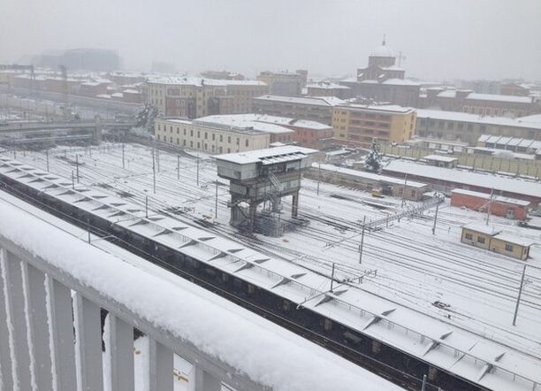 La stazione di Bologna durante una nevicata del 2013 – Foto da Twitter di Alberto Barbuto