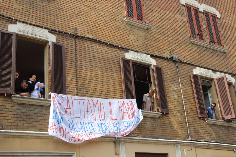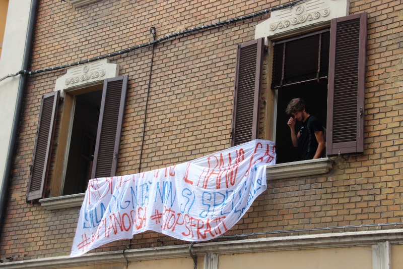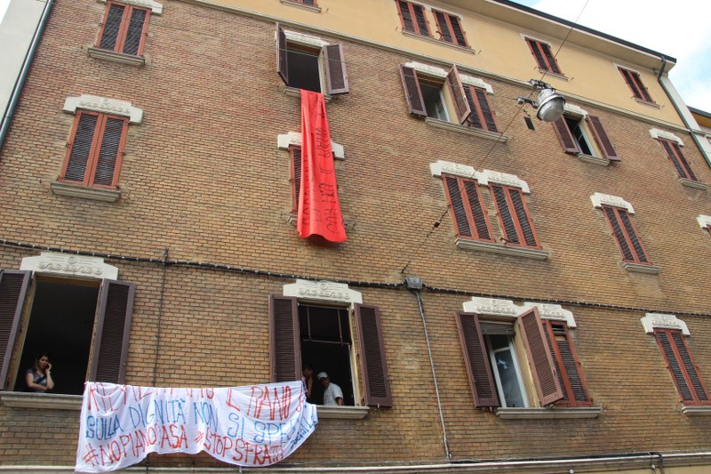 Lo stabile di quattro piani è completamente vuoto e, stando a quanto raccontano gli occupanti, privato. “La proprietà ha 27 alloggi a Bologna e una decina ad Imola” spiega Luca, portavoce del collettivo. Sullo striscione, appeso dalle finestre, si legge: “Ribaltiamo il piano casa. Sulla dignità non si specula”. Gli attivisti, da tempo contestano il piano casa del Governo Renzi che nega residenza e utenze agli occupanti abusivi. Per la nuova occupazione, annunciano: “Chiederemo le residenze e gli allacci delle utenze regolari”. In via Mario De Maria, altra occupazione di Social Log, il Comune aveva concesso le residenze, prima che il piano casa venisse approvato definitivamente.
