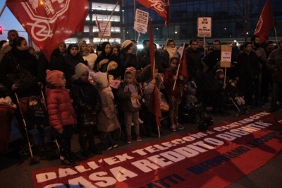 Lo slogan più ripeto è lo stesso da più di un anno: “Casa reddito dignità“. “Alcuni di noi avrebbero potuto salire sulla gru per disperazione, ma adesso ci siamo stancati di chiedere e vivere in miseria, la casa ce la siamo presa” dicono al microfono e poi ancora: “Uno stabile vuoto da dieci anni è uno schiaffo alla miseria, non ce lo possiamo permettere”. In corteo moltissimi bambini, con i passeggini in primi fila, ognuno con una bandiera “Stop Sfratti” o “Social Log”. Uno di loro si è vestito da Babbo Natale e distribuisce patatine. C’è anche chi ha fatto tutto il corteo con un cartone a forma di condominio sulla testa e guarda attraverso le finestre. Sul furgone c’è una casetta di cartone fatta dai ragazzi dell’Isart in occupazione.