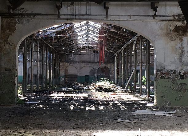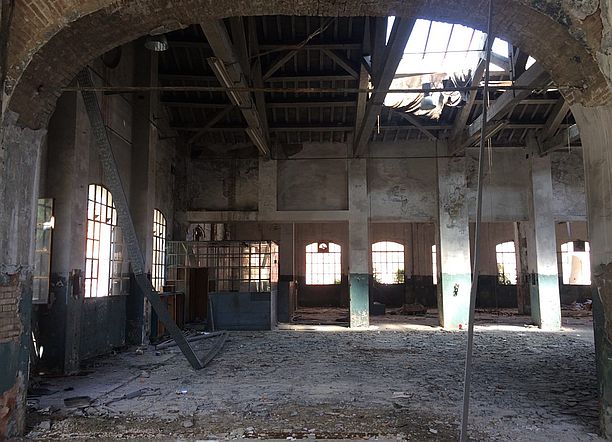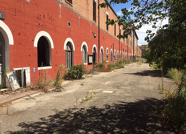 L’edificio della Staveco che dà su Viale Panzacchi. Lì potrebbe entrare Làbas