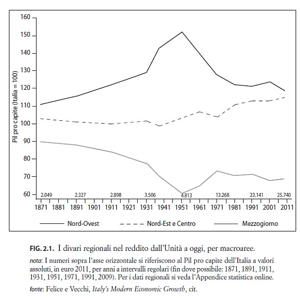 Il grafico qui sotto è tratto dal volume “Perché il Sud è rimasto indietro”.