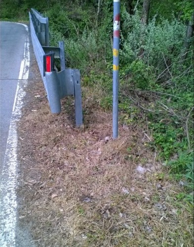 “Impossibile, noi non lo usiamo” è stata la prima risposta del dirigente del settore strade, l’ingegnere Pietro Luminasi, raggiunto telefonicamente lunedì 11 aprile. Martedì 12 la risposta della città metropolitana cambia: “Sì, abbiamo usato il diserbante” ha risposto Lorenzo Minganti, sindaco di Minerbio e consigliere delegato per l’ambiente. “Il prodotto che noi utilizziamo (Shamal Mk Plus, diserbante totale a base di glifosate, ndr) è un prodotto autorizzato, che si può acquistare al Consorzio Agrario Provinciale” spiega Minganti, che precisa come il suo utilizzo sia consentito solo in determinati contesti: “Siamo autorizzati ad usare il diserbante lungo le gabbionate (le gabbie di ferro con dentro i sassi che servono ad evitare smottamenti, ndr), e negli altri posti dove non è possibile fare lo sfalcio meccanicamente”.NEl caso in questione però, è andata diversamente: il diserbante è stato usato anche attorno ad alcuni segnali stradali, in corrispondenza di alcuni guard rail e di alcuni pozzetti di raccolta e di attraversamento delle acque, come dimostrano le fotografie qui sotto. Le immagini, scattate martedì 12, dimostrano come nel frattempo qualcuno sia intervenuto a sfalciare l’erba rinsecchita dal diserbante.