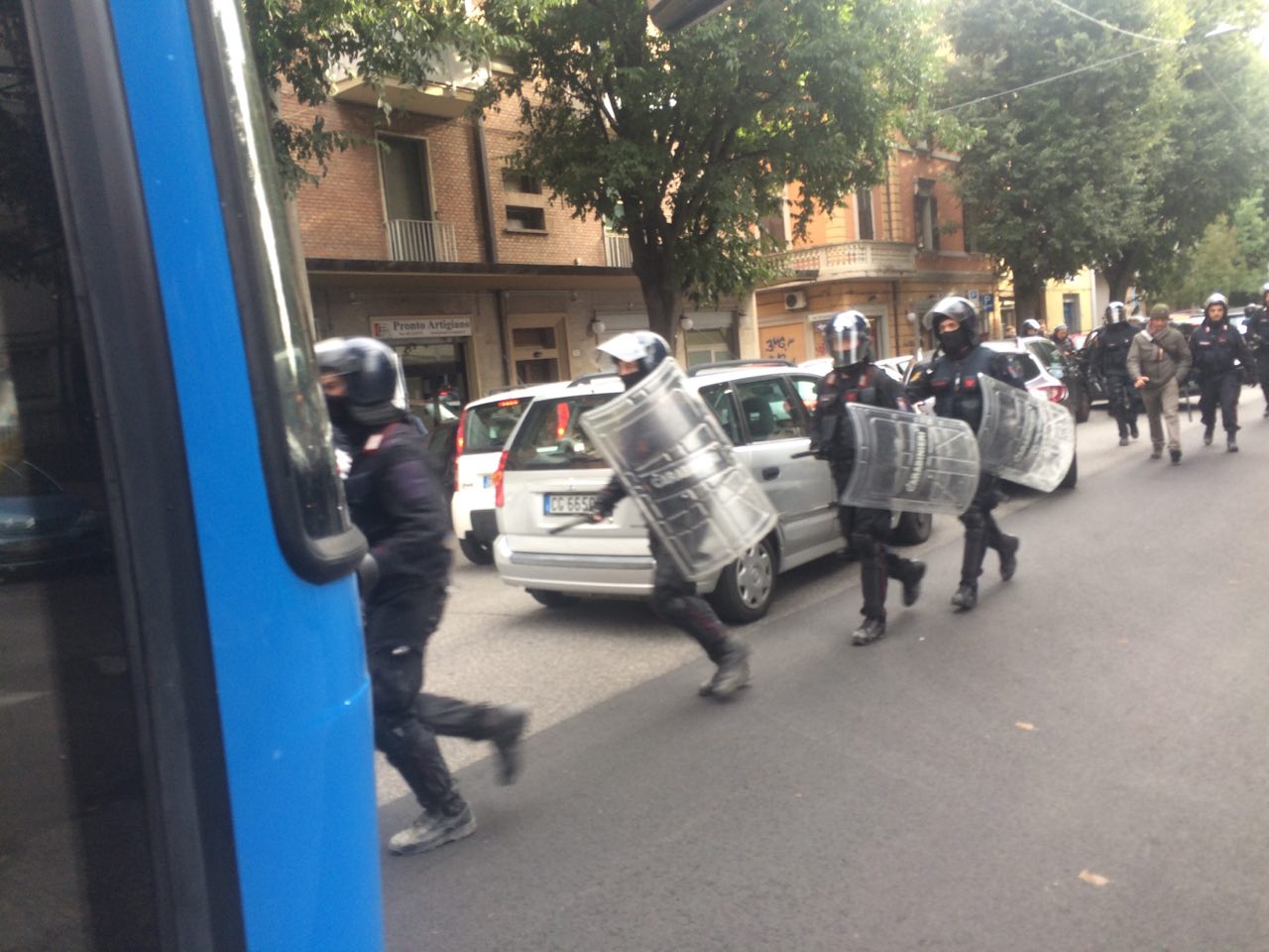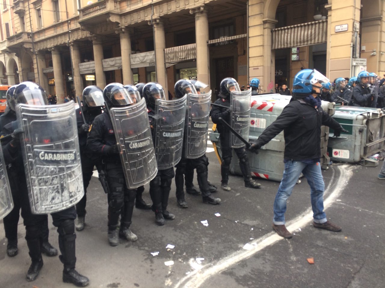I carabinieri hanno seguito a corsa i manifestanti per via Tiarini fino a via Fioravanti.