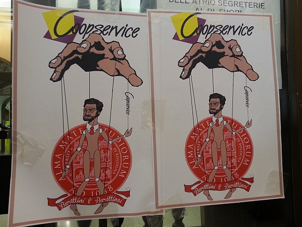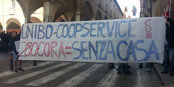 Per chiedere all’Alma Mater di prendere posizione, oggi una trentina di manifestanti sono entrati in rettorato ma, prima di poter raggiungere lo scalone che porta alla sala del Senato accademico, sono stati fermati da una porta chiusa. Pochi minuti dopo, però, Ferrari si è presentato ascoltare le loro richieste, affiancato dal direttore generale Giuseppe Colpani. Al momento di affidare l’appalto, come Ateneo “non sapevamo le condizioni reali” in cui si sarebbero venuti a trovare i lavoratori, afferma Ferrari. “Non le sapevamo perché Coopservice ha mutato il contratto collettivo di lavoro e non è un dato pubblico evidente, questo, dopo aver vinto l’appalto”, aggiunge Colpani. “Noi pensavamo di aver ereditato lo stesso contratto multiservice e quindi non avevamo cognizione di causa rispetto a quelle che erano le conseguenze sui lavoratori”, assicura il direttore generale. Ad ogni modo, “dalla fine dell’anno scorso abbiamo cercato di prendere in carico la questione- continua Colpani- sia con Coopservice sia con le sigle firmatarie di quel contratto”, Cgil e Cisl, “perché noi non siamo controparte nel contratto”. Però, dato che “siamo l’ente che usufruisce di quel servizio, possiamo per altre vie, non formali– aggiunge il direttore- entrare in dialogo con le parti per capire come risolvere la situazione”.