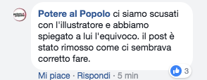 A seguito di questo scambio pubblico, l’immagine è stata rimossa dai canali social di Potere al Popolo.