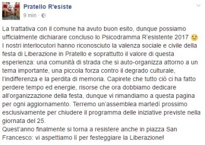 Che la trattativa stesse per portare alla fumata bianca si era capito ieri, dopo l’incontro a porte chiuse tra Pratello R’esiste e istituzioni in Comune. “Abbiamo fatto tutto il possibile, noi la festa vogliamo farla”, aveva detto Cipriani a fine riunione.