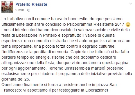 A dare la notizia direttamente Pratello R’esiste sulla sua pagina facebook. I dettagli sono stati diffusi dall’assessore Matteo Lepore in question time in Comune. “Come negli anni scorsi la manifestazione sarà patrocinata, e con gli organizzatori abbiamo definito le modalità migliori per gestire la festa”.