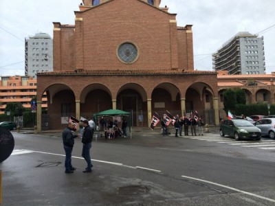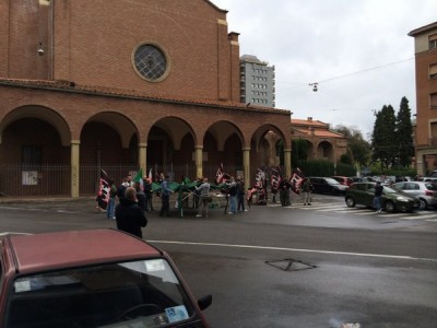 Bologna, 5 apr. – Forza Nuova ha tenuto questo pomeriggio un presidio in via del Borgo di San Pietro, davanti alla chiesa della Beata Vergine del Soccorso. Piazza interdetta al traffico veicolare e ciclabile, deviazione dei bus proveniente dalla e diretti in autostazione, controlli agli accessi della piazza e persone costrette ad aggirare la zona. Questo il frutto del “Presidio contro il Degrado” annunciato dal partito di estrema destra.