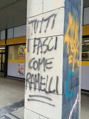 In realtà, però, la contestazione al presidio di Forza Nuova era stata preventiva. La scorsa notte qualcuno ha tracciato su gran parte delle colonne che delimitano la piazza, comprese quelle della chiesa, slogan antifascisti, tutti ben leggibili dal punto in cui i forzanovisti hanno tenuto il banchetto.