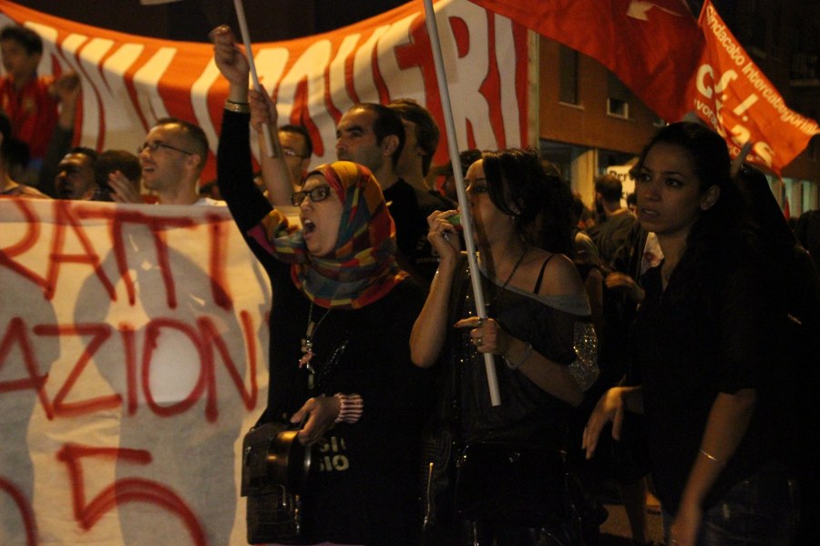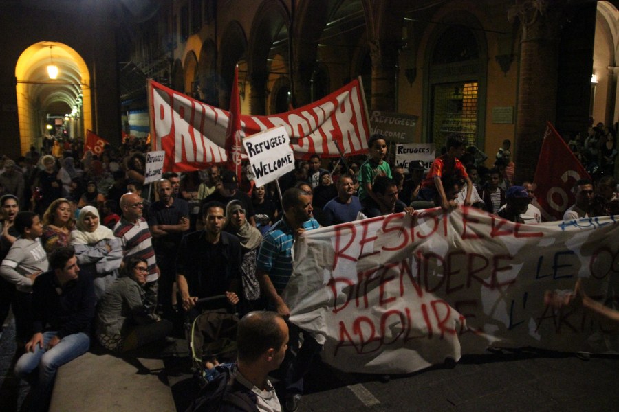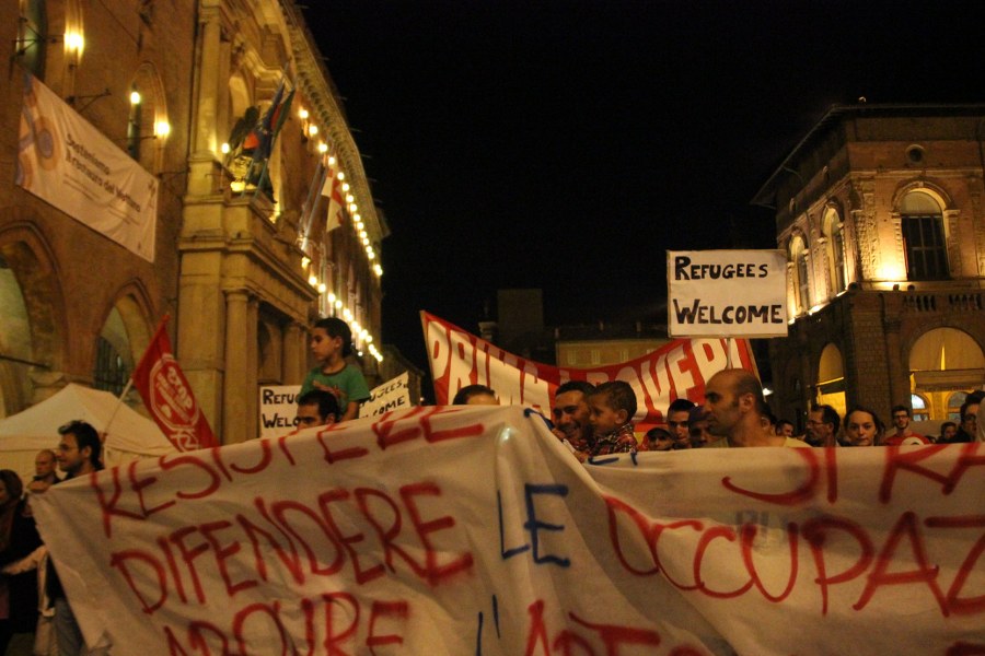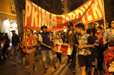 Bologna, 13 set. – “Prima i poveri” è la frase scelta dai manifestanti per il diritto alla casa per rispondere all’adagio leghista “prima gli italiani”. “Bianco o nero, italiano o marocchino non fa differenza. C’è chi sfrutta e chi è sfruttato, chi ha una casa e la lascia vuota e chi una casa non ce l’ha” spiegava un’attivista in testa al rumoroso corteo che ieri sera ha attraversato le strade di Bologna. Prima la Bolognina, dove si trovano due delle occupazioni targate Social Log, il collettivo che ha lanciato la “Notte Rossa“. Poi il corteo, da circa 300 persone, è arrivato in centro passando dalla zona universitaria; ha percorso via Rizzoli, facendo lo slalom tra le transenne del cantierone, piazza Nettuno, piazza Roosvelt, via del Pratello fino, percorrendo i viali, a Porta Lame.