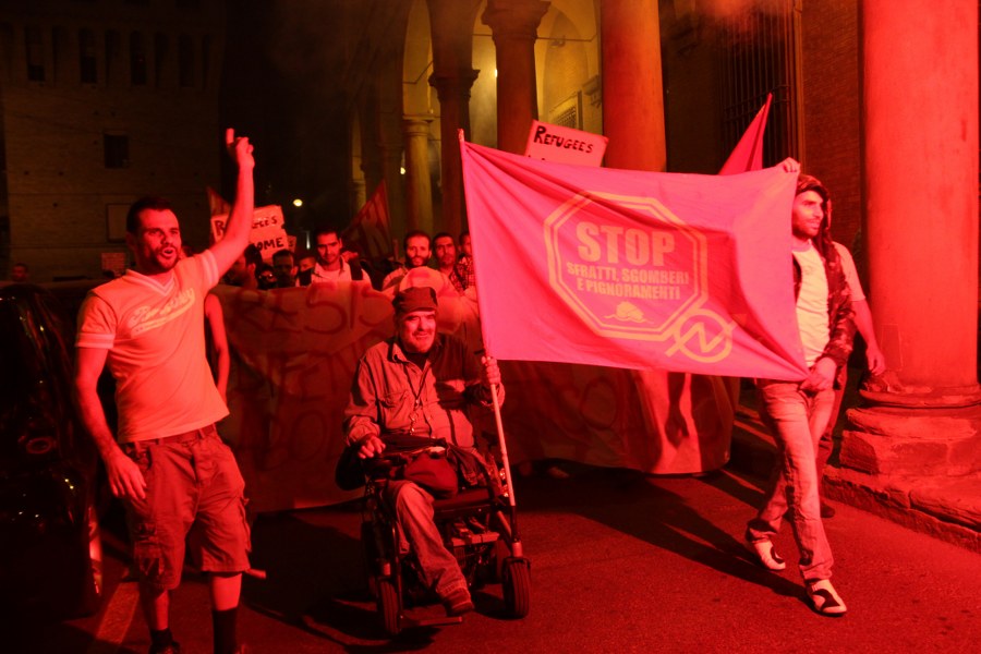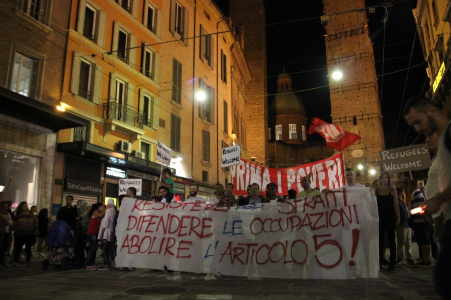 Durante il corteo serale, attraversando i luoghi della movida bolognese, gli occupanti hanno chiesto nuovamente il blocco di sfratti e sgomberi. “Finalmente si è aperto un vero tavolo di trattativa su un problema che colpisce tre famiglie ogni giorno a Bologna” commenta Massarelli, che lo scorso 8 settembre ha partecipato al tavolo in Prefettura. Bocche cucite invece sull’ipotesi del trasferimento nel residence Galaxy: “A noi non è stata ancora fatta nessuna offerta, non abbiamo nulla da commentare”.