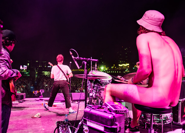 E dopo il pathos di Sampha non c’è miglior contrasto rispetto a quello offerto dall’indie rock di Mac DeMarco: stralunato e “cazzone”, il musicista canadese alterna canzoni vecchie a quelle dell’ultimo My Old Dog, tra battute grevi, momenti di follia e di sano amore per le migliaia di persone per cui suona. Oltre alle canzoni, suonate bene, con leggerezza e grazia, il concerto è caratterizzato da un batterista completamente nudo, dalle incursioni situazioniste dei Whitney sul palco, tra percussioni non collegate ad alcun impianto di amplificazione e stagediving a comando, e dallo spogliarello finale, ma non integrale, dello stesso DeMarco. Un live leggero, divertente, sincero e diretto, che lascia tutti con il sorriso.