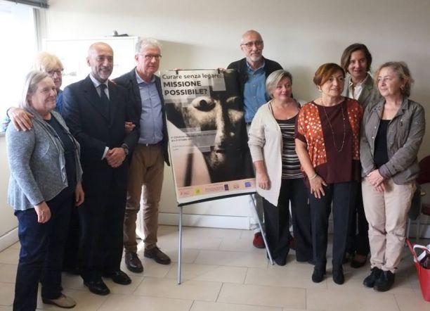 Fabrizio Starace dell’Ausl di Modena (il terzo da sx) a Carpi durante l’iniziativa del 2017 “Curare senza legare. Missione possibile?”